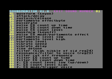 If you somehow manage to climb he steep learning curve and make some music, you can now listen to it in Soundmonitor, save it to disk or tape, or export it as a 'module', which contain all the track note lists, sound parameters, and all other data needed to play back your music. Most trackers supported playing sampled sounds as well, and modules from those trackers would contain all sample data as well.