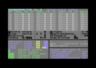 What we can also see is that the Soundmonitor editor itself is located at $1000. So, I tried entering address $1000 into the track/step table: